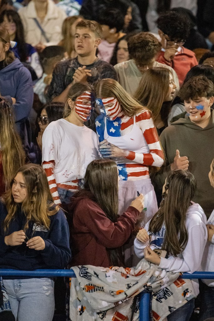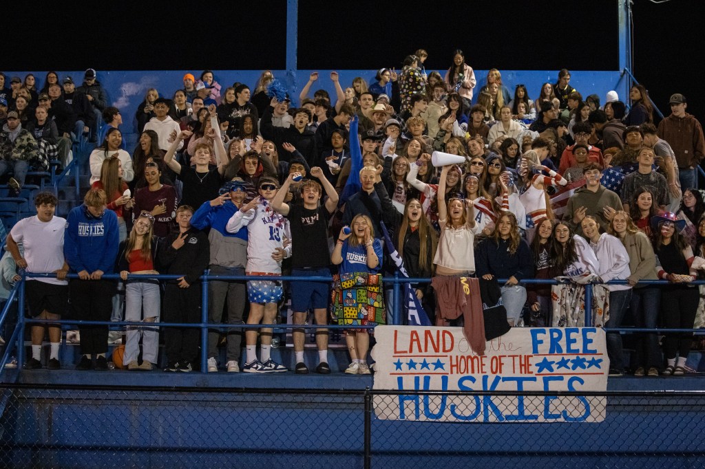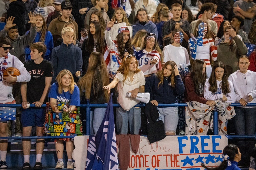 The student section came fully themed for the occasion β βLand of the Free, Home of the Huskiesβ β decked out in red, white, and blue face paint, waving American flags, and showing off their Husky pride in true patriotic style.
