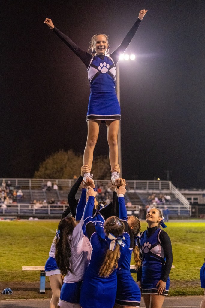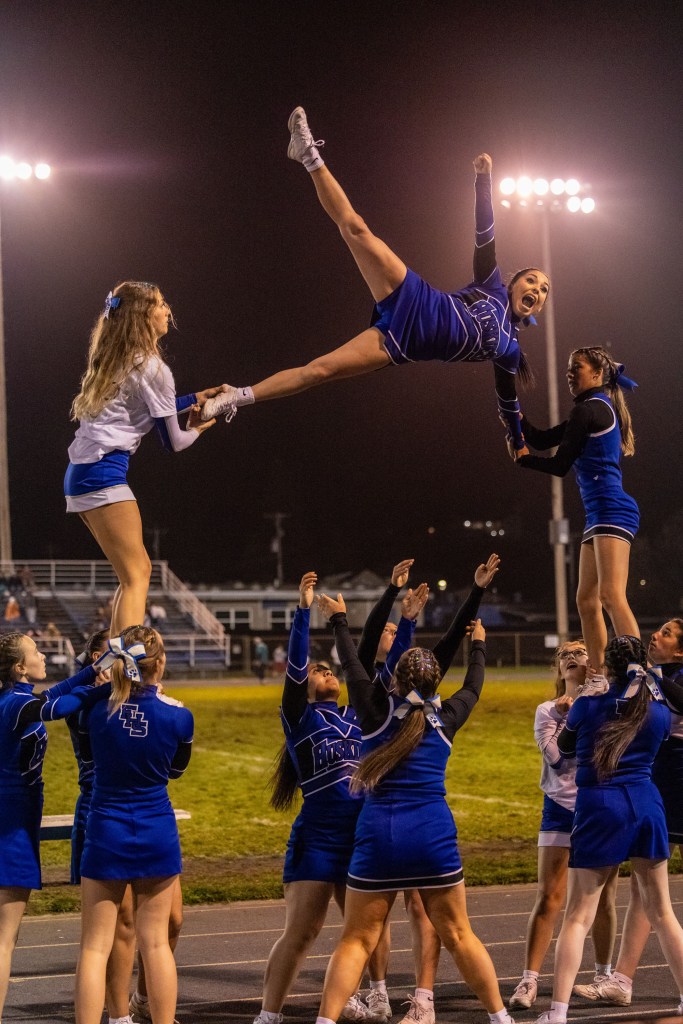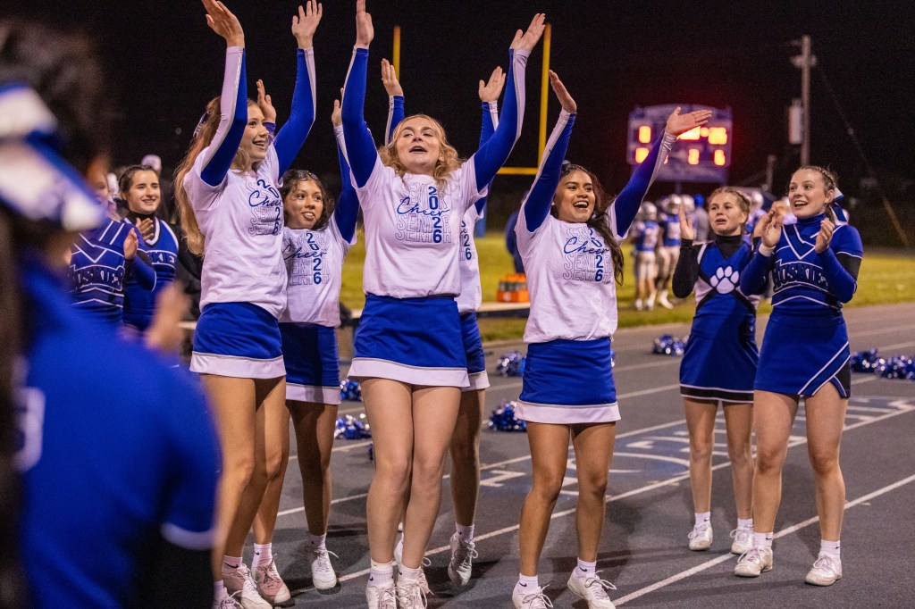 The senior cheerleaders led the way in matching shirts and were featured in key parts of the routine, showcasing their leadership, skill, and the spirit theyβve brought to the program throughout their time at Fortuna High. Their final Senior Night performance was full of sharp choreography, teamwork, and excellent showmanship β all cheered on by a packed stadium.