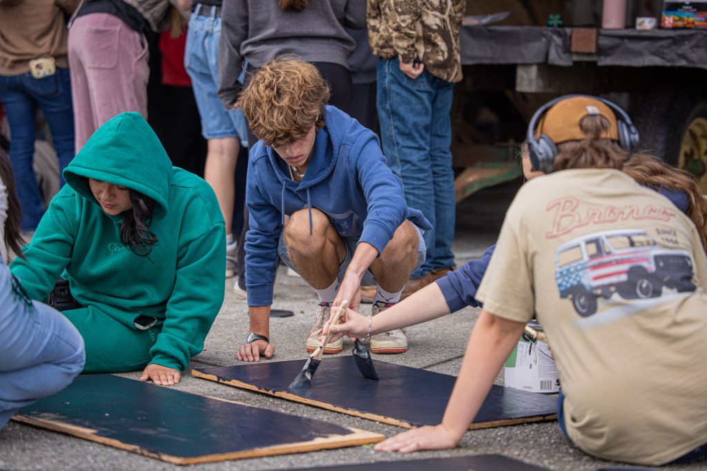 In the days leading up to Homecoming, creativity came alive after school as students gathered to build their class parade floats. Classmates worked side by side painting, sculpting, cutting, gluing, and assembling the designs that would later roll down Main Street during the Homecoming Parade.