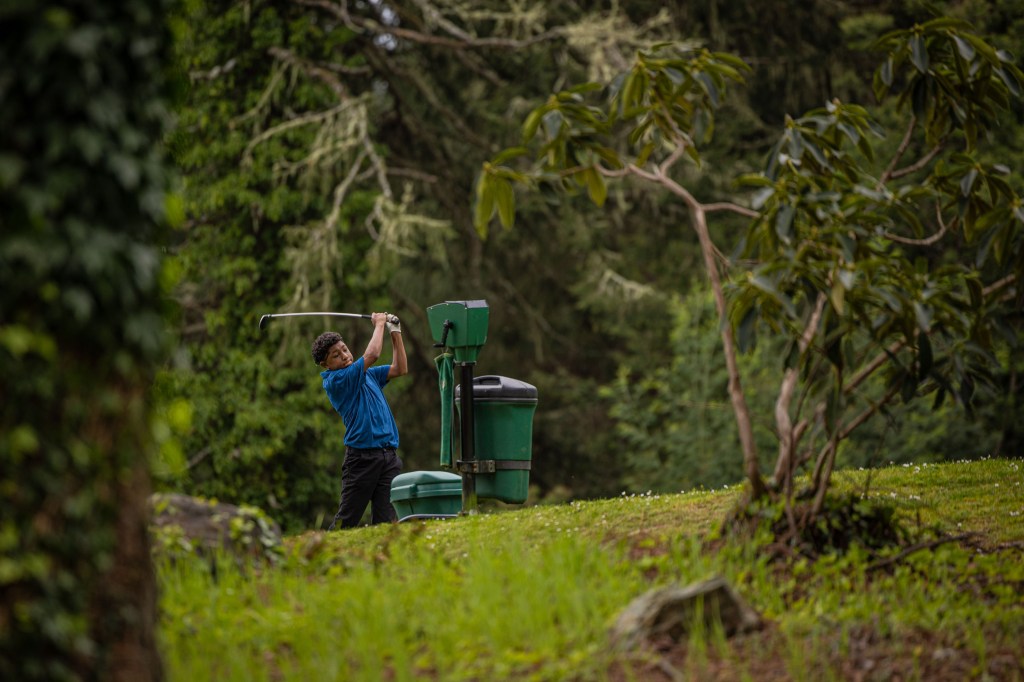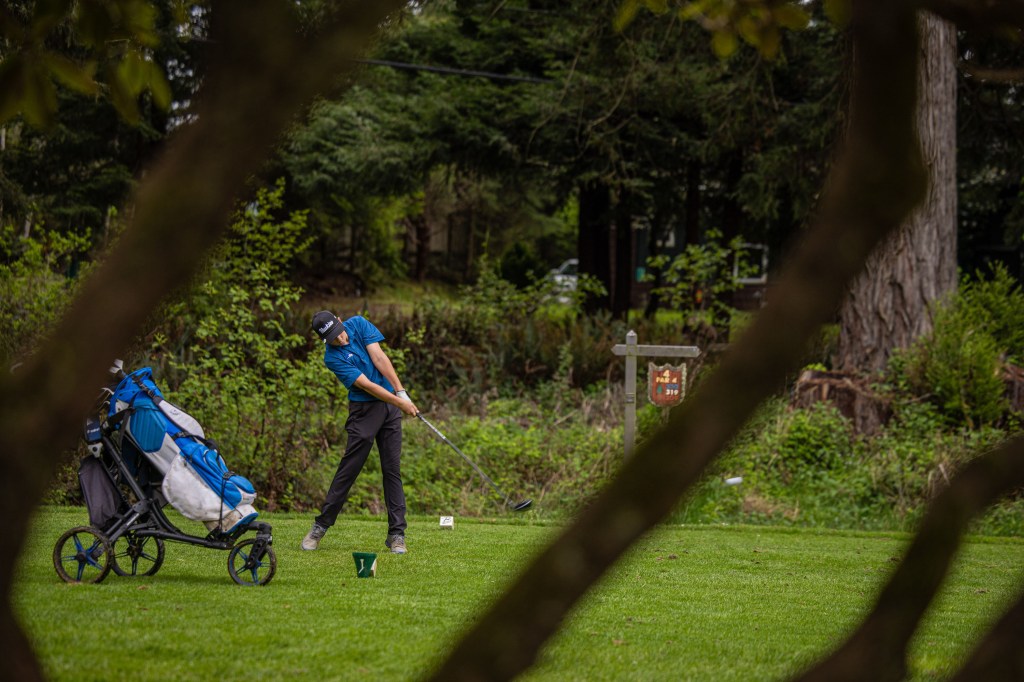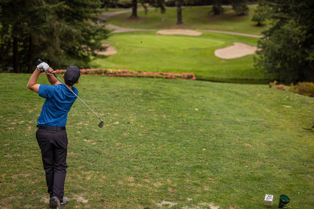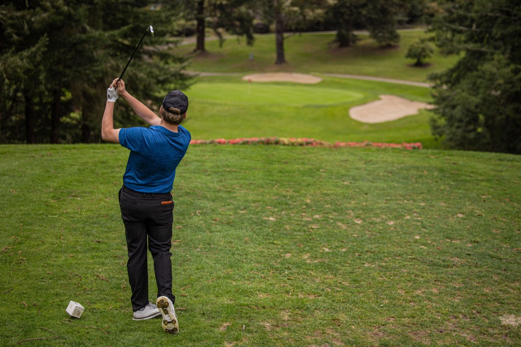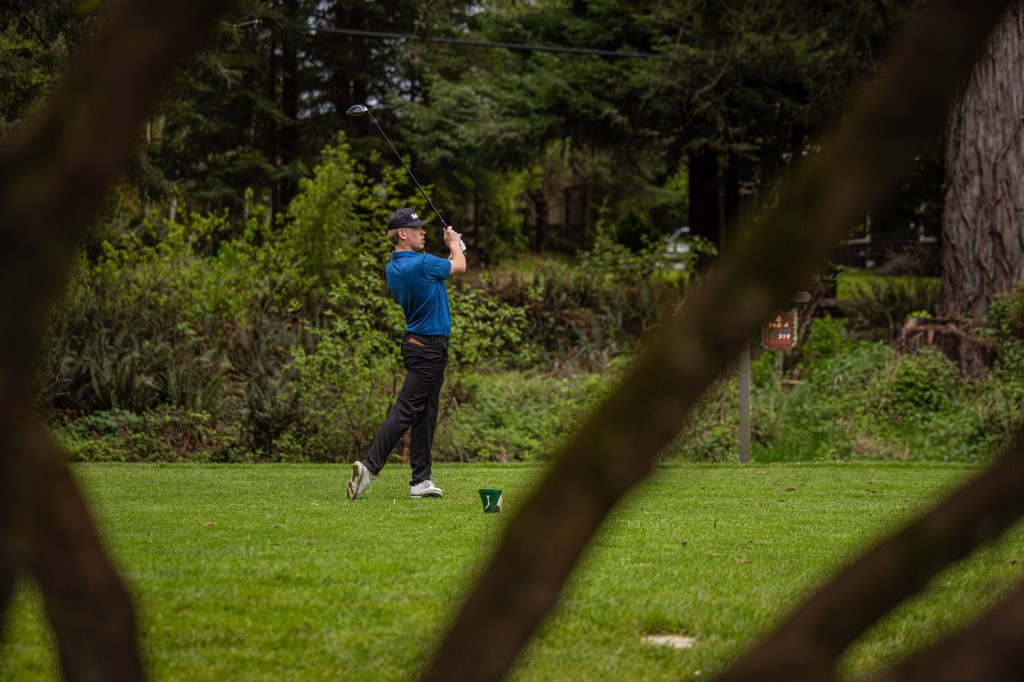 It was a cloudy day with a light sprinkle, but the conditions only added to the atmosphere of the course — surrounded by towering redwood trees, rolling greens, and peaceful water features that made for a stunning backdrop.